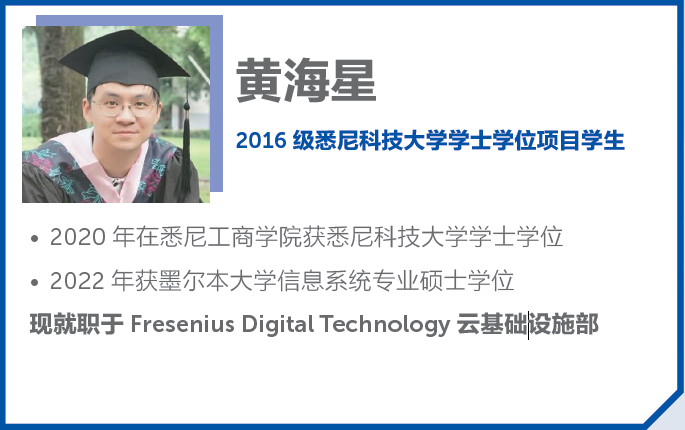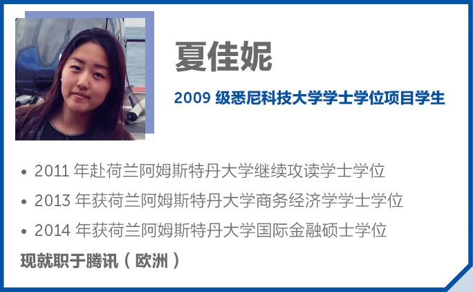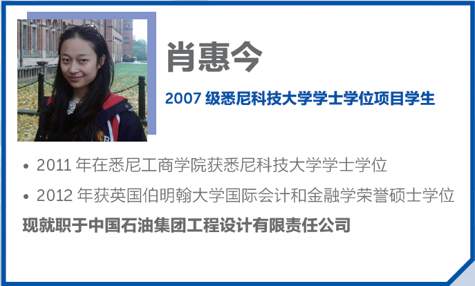• 四年毕业后获得悉尼科技大学学士( 本科) 学位,毕业生可选择国外大学经济、管理、金融、会计等十几个研究生专业继续深造