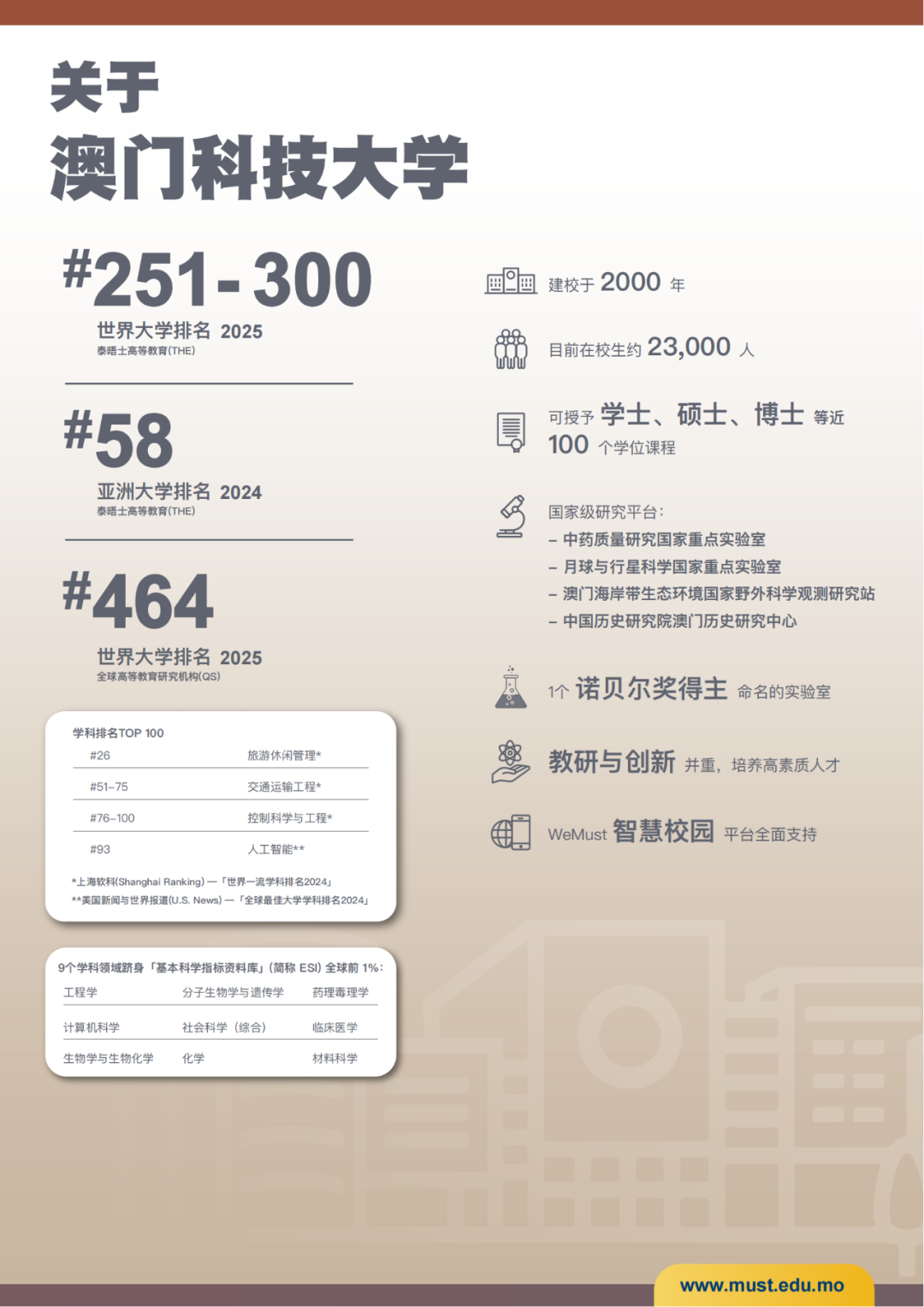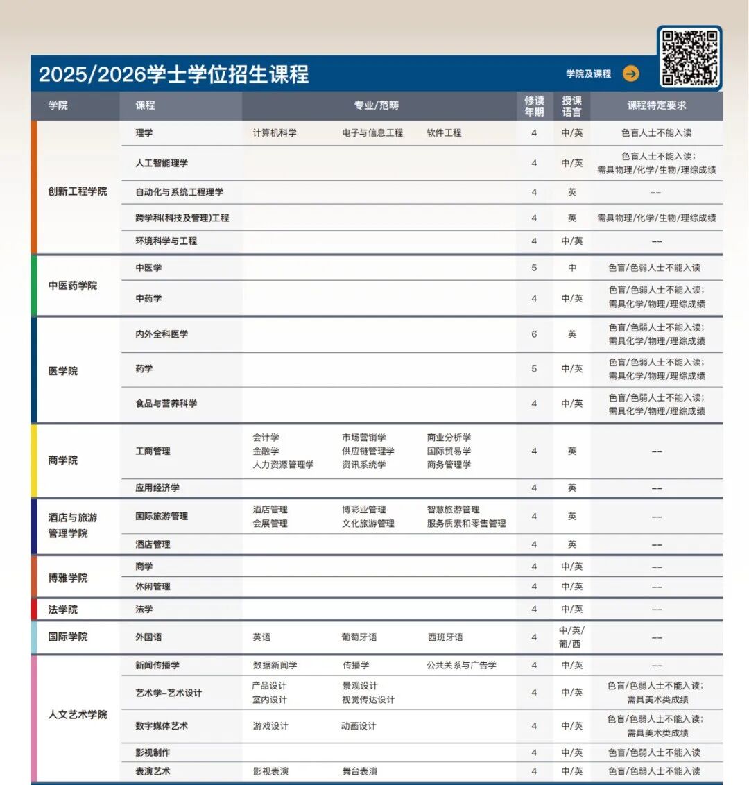 澳门科技大学2025/2026学年学士学位课程内地高考生入学简章已发布!