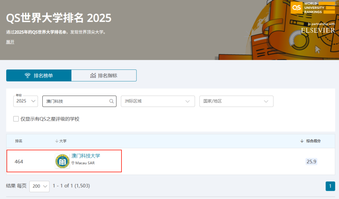 在2025QS世界大学排名中,澳门科技大学排名全球第464位,可与北航比肩!