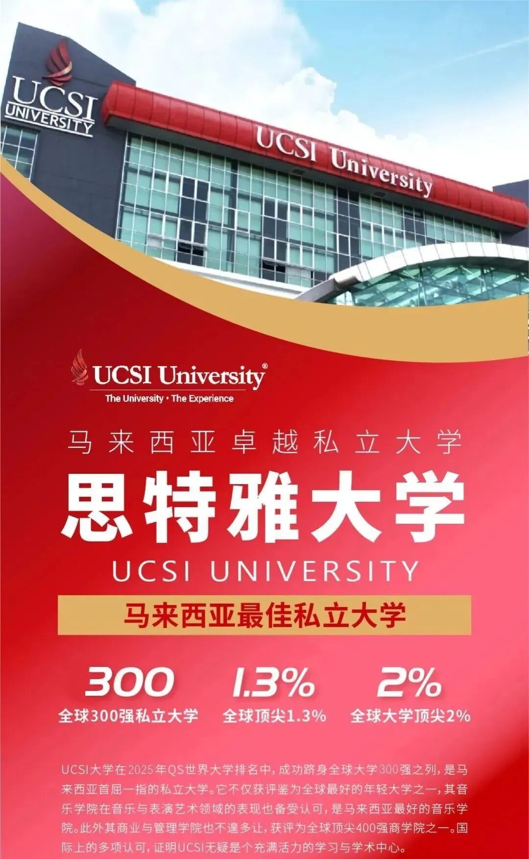 UCSI不仅是马来西亚教育部批准成立的大学,还得到了中国教育部的授权认可,是马来西亚第一批被认证的大学,其文凭在国际上享有盛誉。