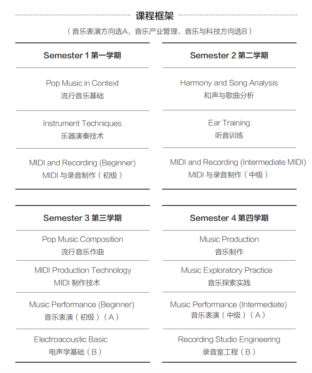 音乐专业教学将理论与实践紧密结合,多维度启发学生音乐创作灵感,不断探索全球音乐前沿趋势,并独立塑造个性化曲目风格。同时,学生在提升音乐审美与表现的基础上,还将掌握数字编曲等各项技能。