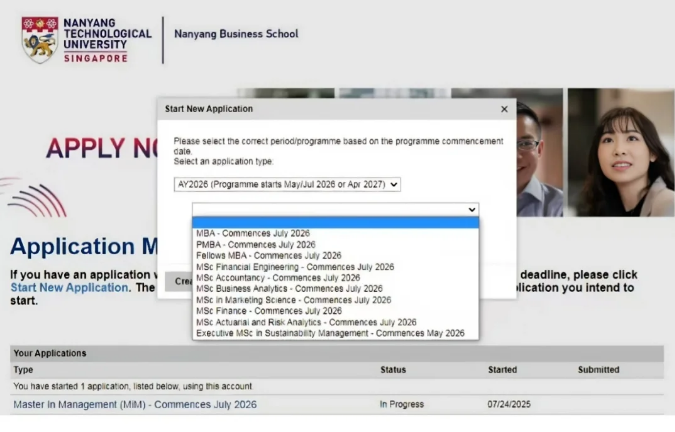 是的,你没看错。现在NTU商学院的网申系统直接显示——全部可申状态!也就是说,你现在就可以申请26Fall的所有硕士项目了!