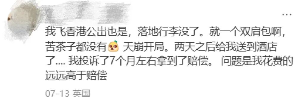 在填写报告时,询问航空公司关于行李延误或丢失的赔偿政策。虽然过程可能会比较麻烦,但是也有维权成功的案例的。