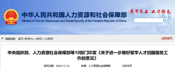 2024年底,中央组织部、人社部等10部门联合发布《留学人才回国服务工作意见》,为应届生权益保驾护航: