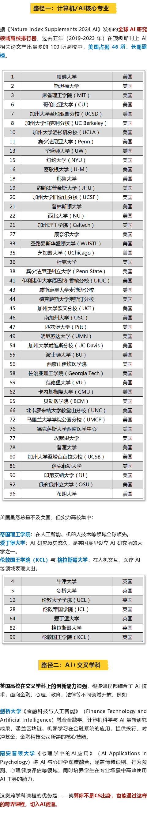 2. AI+应用场景交叉学科:适合非 CS 背景的学生,将 AI 技能嫁接到原本的专业领域。