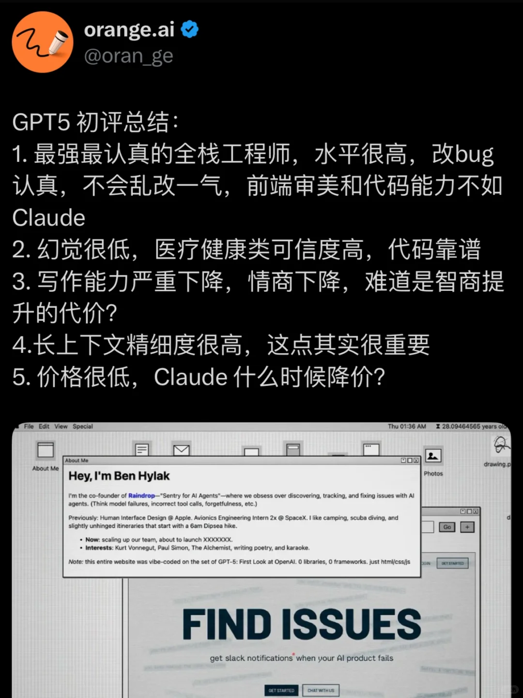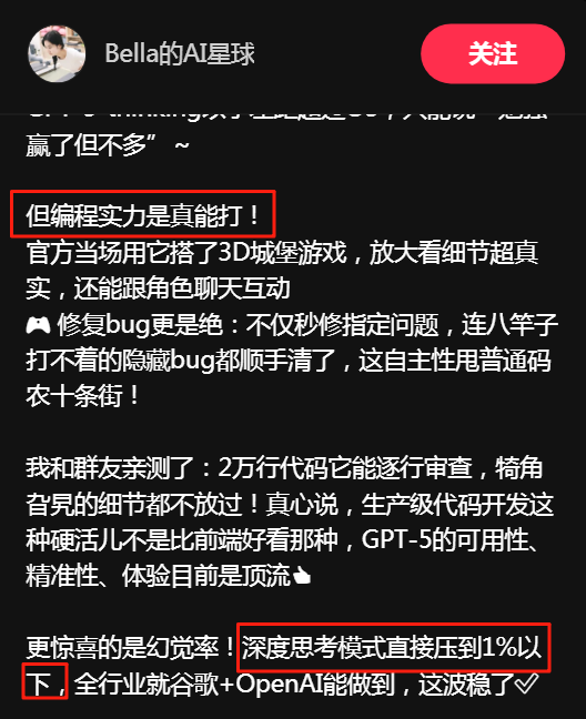在中文互联网上,很多第一时间试用 GPT-5 的用户给出评价: