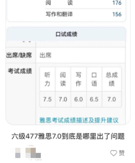 但六级高分并非一劳永逸,口语、写作板块是众多中国考生的「拦路虎」。