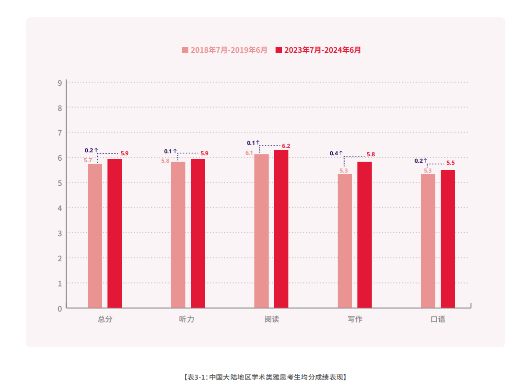 图源:《2023-2024中国大陆地区雅思考生成绩大数据报告》